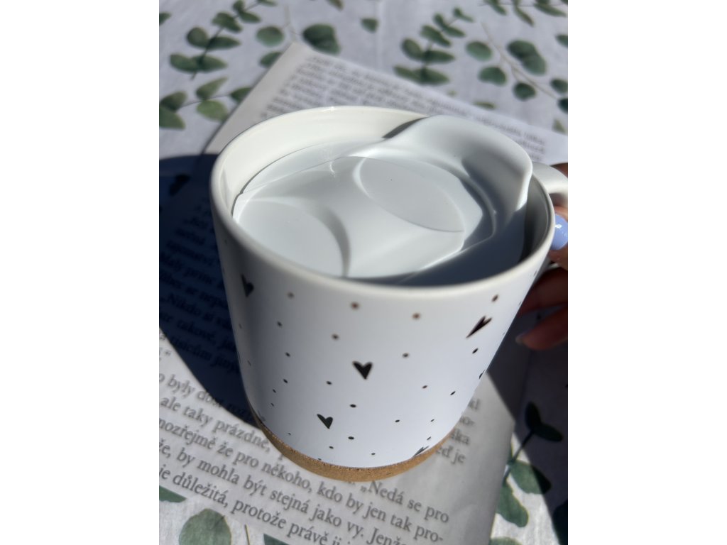 Keramický hrnek s korkovým dnem a víčkem – 400 ml