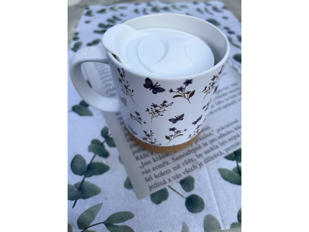 Keramický hrnek s korkovým dnem a víčkem – 400 ml