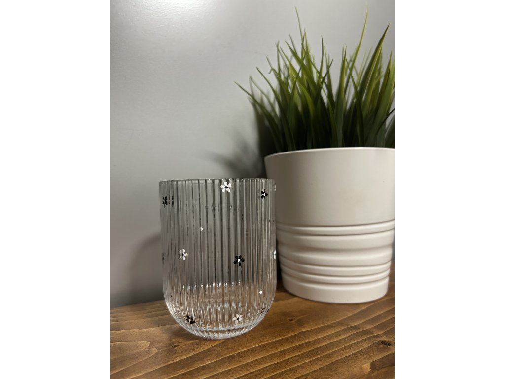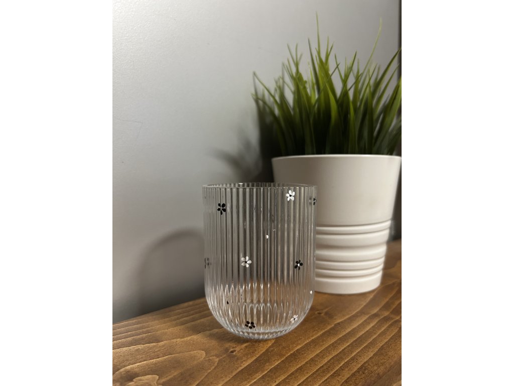 Každá sklenička je originál – zdobená drobnými kytičkami, které jsou ručně malované s láskou k detailu. Díky jemnému vroubkovanému sklu působí elegantně a hodí se jak na slavnostní příležitosti, tak i na každodenní chvíle pohody.